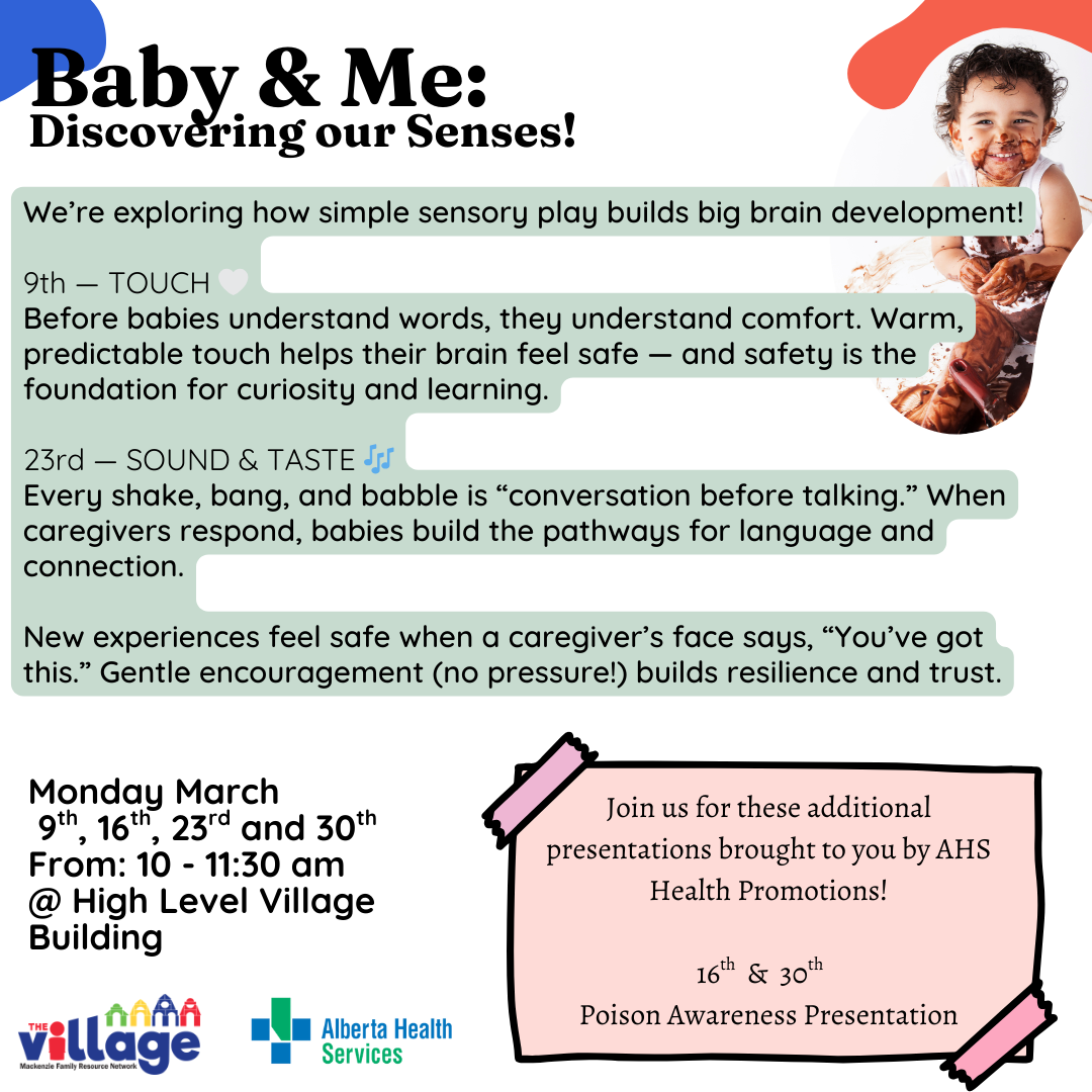 This weekly drop-in program invites caregivers and babies to explore the power of sensory play in a warm, welcoming space. Together, you’ll discover how simple experiences like touch, sound, and taste help increase brain development and lay the foundation for learning, language, and connection.