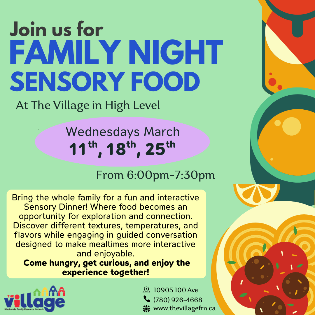 Family Night is a weekly gathering that invites families to come together for an evening of food, connection, and meaningful time with one another. Each week offers a relaxed, family-friendly atmosphere where caregivers and children can share a meal, enjoy sensory activities, and build community connections. This program creates space for families to slow down, connect, and feel supported in a welcoming and inclusive environment.