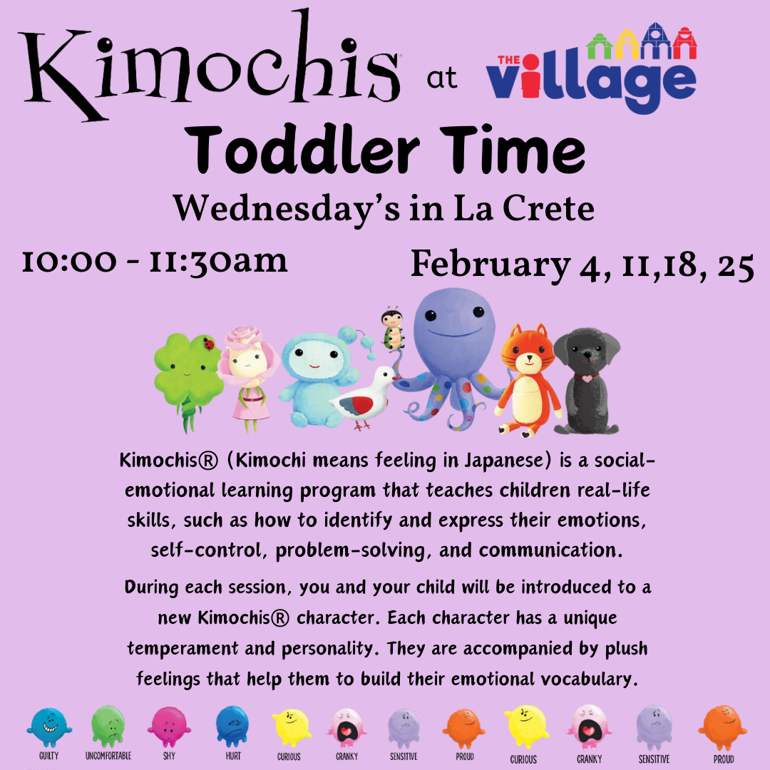 This month we are introducing children to early social-emotional learning through the Kimochis® characters. Each session focuses on naming feelings, building communication skills, and supporting self-regulation in developmentally appropriate ways. Caregivers will learn simple strategies to model emotional language and support their child’s growing understanding of emotions through play, stories, and connection.